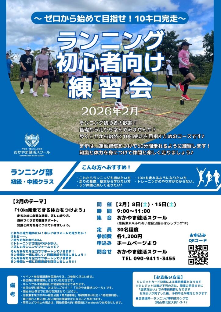 おかやま健活スクールからお知らせです。 ランニング初心者大歓迎!基礎から走りを学んでみません …