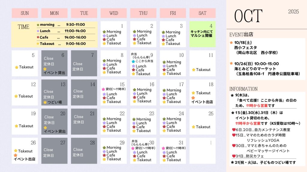 ぬるま湯キッチン営業日のお知らせ【10月】