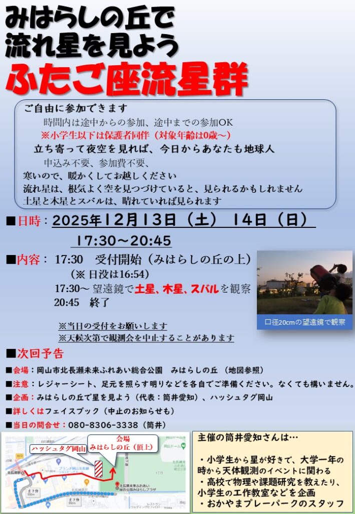 市街地では珍しい、360度視界の開けたみはらしの丘で、天体観測を楽しみましょう 望遠鏡、双眼鏡、デジタル観望機器 …