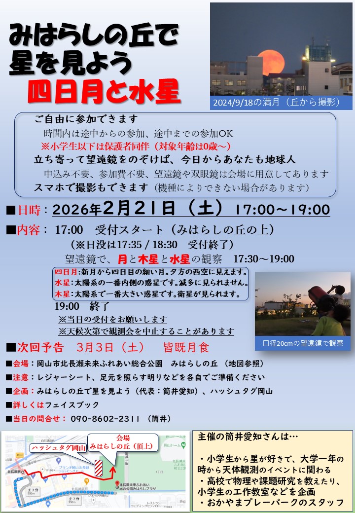 市街地では珍しい、360度視界の開けたみはらしの丘で、天体観測を楽しみましょう